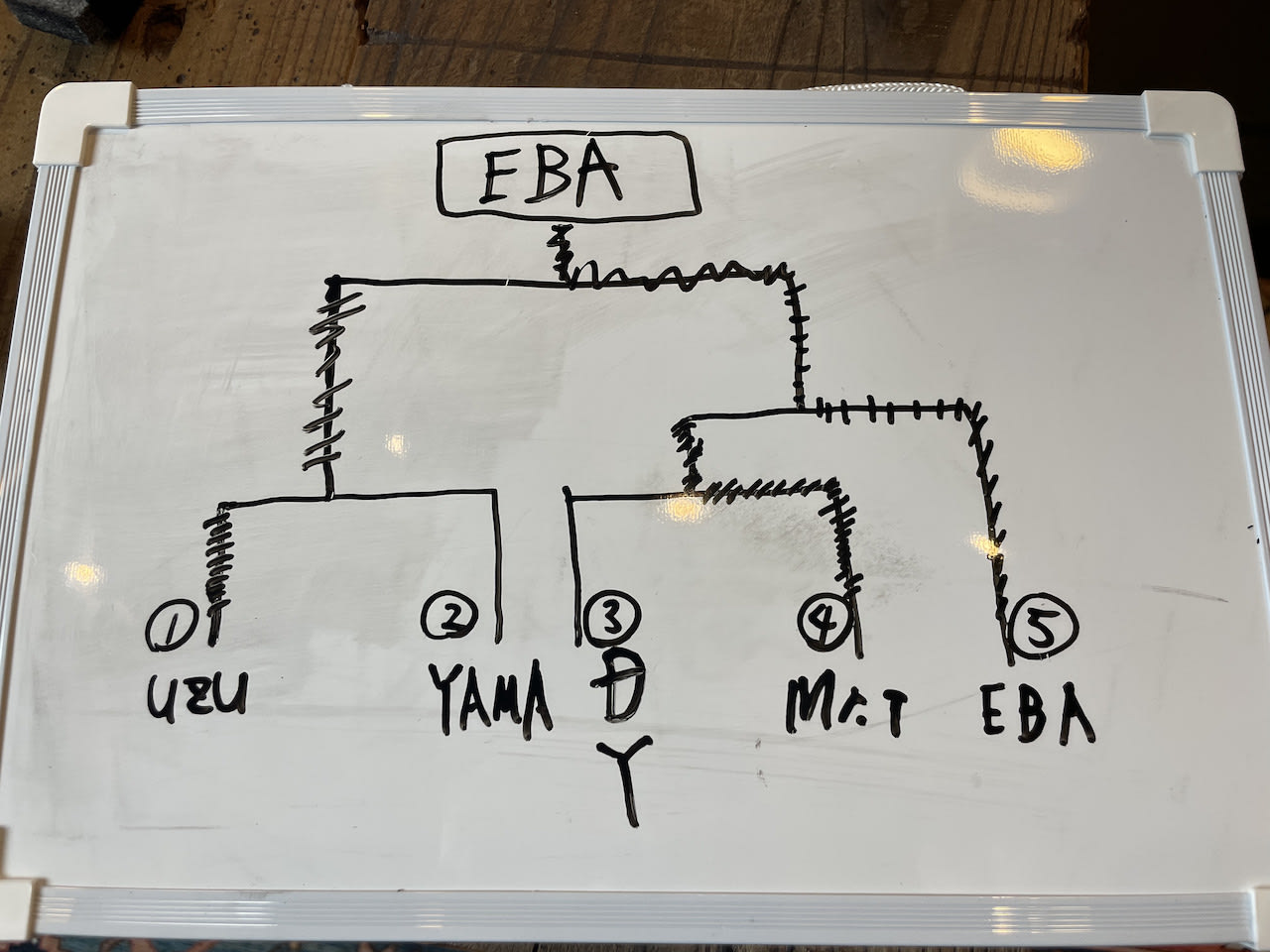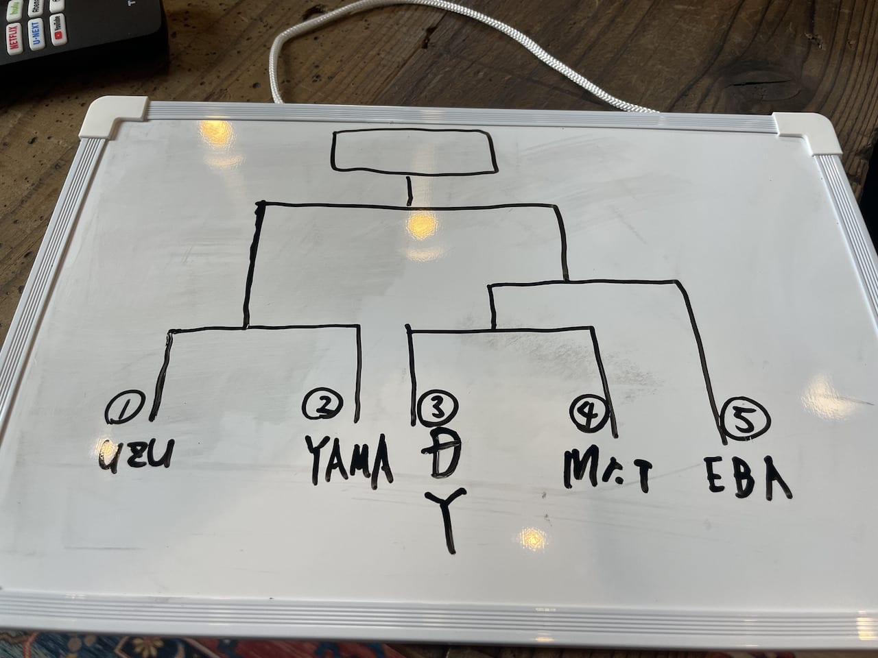 今回は参加者が5名なので1人シードになりますが、腕は関係なくくじ引きで決定しました。