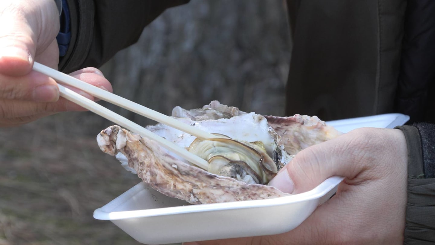 牡蠣を食べようとしましたが、UZUさんが割り箸を忘れてしまうトラブルが発生!