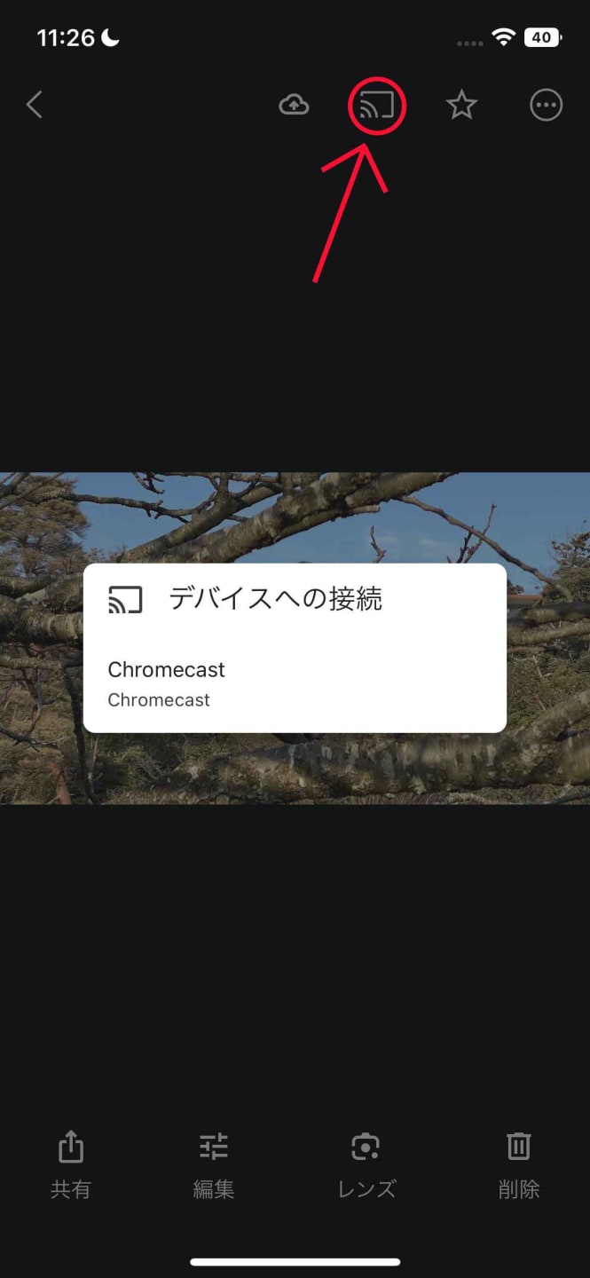 上部にあるキャストアイコンを押します。